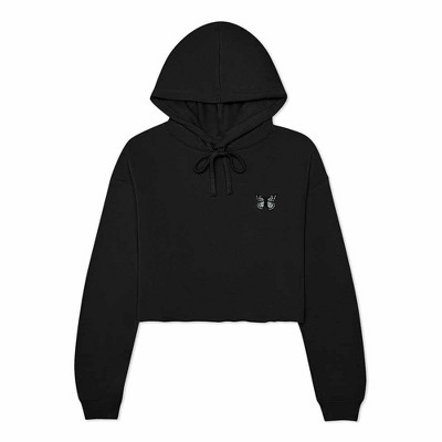 Dalix Butterfly Embroidered Fleece Cropped Hoodie Pullover Relaxed Fit Womens
