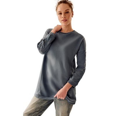 ellos French Terry Lace Trim Sweatshirt Tunic