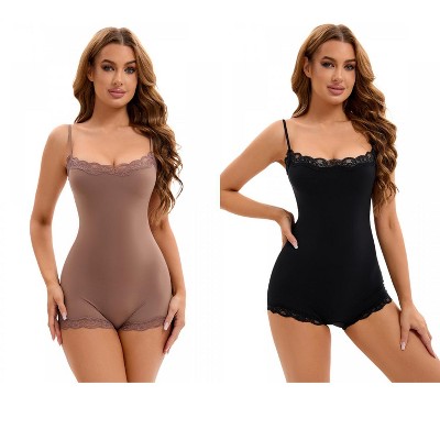 INSPIRE CHIC Women's Spaghetti Strap Open Backless Tummy Control Leotard Shapewear Slim Fit Bodyshapers 3 Packs
