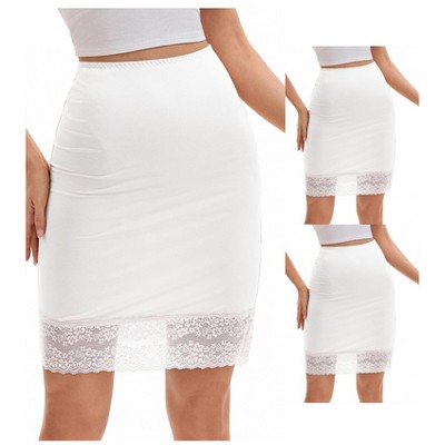INSPIRE CHIC 3 Packs Anti-Static Half Slips for Women Soft Underskirt Short Mini Skirt with Floral Lace Waistband