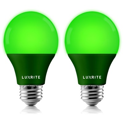 Luxrite A19 LED Green Bulb, 60W Equivalent, Non-Dimmable, UL Listed, Indoor Outdoor, Porch, Christmas, Decoration, E26 Standard Base 2 Pack