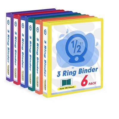 Itopfox 3 Ring Binder 0.5 Inch, 6 Pack 1/2-Inch Binder Fits Letter Size, Versatile Binders for Office Home School, 2 Pockets, Assorted 6 Color
