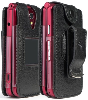 Nakedcellphone Case for Verizon eTalk Flip Phone - Vegan Leather with Belt Clip - Black