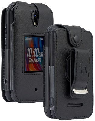 Nakedcellphone Case for Consumer Cellular Verve Snap Flip Phone - Vegan Leather with Belt Clip - Black