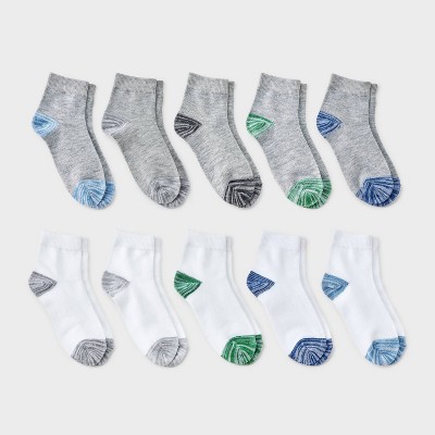 Boys' 10pk Random Feed Heel & Toe Ankle Socks - Cat & Jack™ Gray/White