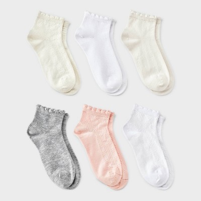 Girls' 6pk Pointelle Scallop Edge Ankle Dress Socks - Cat & Jack™