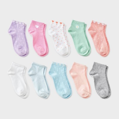 Girls' 10pk Floral & Hearts Ankle Socks - Cat & Jack™ Assorted Colors