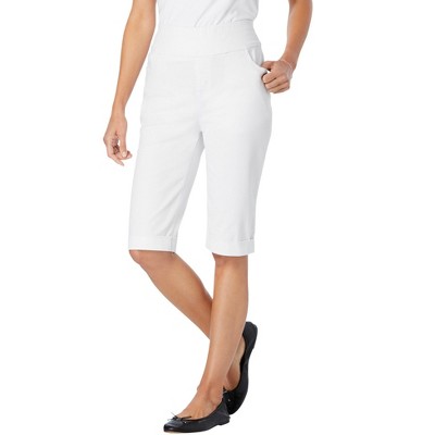 Woman Within Pull-On Flex-Fit Elastic-Waist Stretch Denim Jeans Shorts