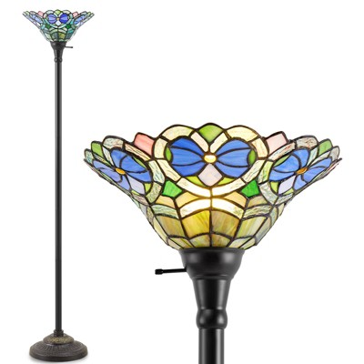 Amora Lighting Tiffany-style Hummingbirds Floral Torchiere Floor Lamp 70 Inch Tall