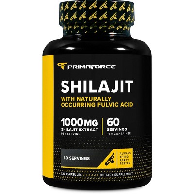 Primaforce Shilajit 120 Capsules (1000mg) - With Naturally Occurring Fulvic Acid, 60 Servings