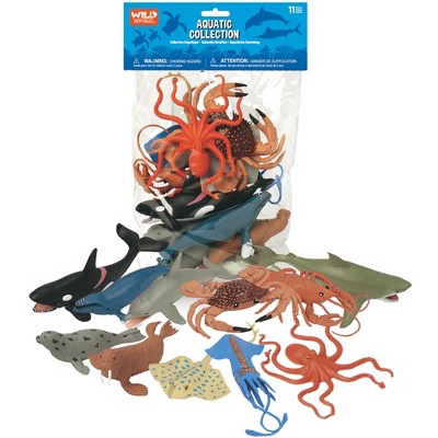 Wild Republic Aquatic Polybag, Octopus, Shark, Dolphin, Orca, Crab, Lobster, Blue Whale, Stingray, Squid, Harp Seal, Walrus Toys, 11 Piece Set
