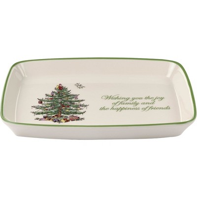 Spode Christmas Tree Rectangular Sentiment Tray (7" x 5") - Festive Earthenware Serving Plate, Durable Christmas Tableware - Dishwasher Safe