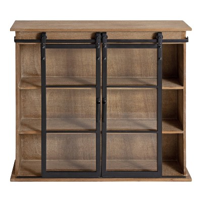 30" x 28" Barnhardt Decorative Wooden Wall Cabinet with 2 Sliding Glass Doors Rustic Brown - Kate & Laurel All Things Decor: Metal Framed
