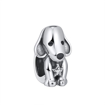 Puppy Dog Charm European Bead CZ Sterling Silver Ginger Lyne Collection