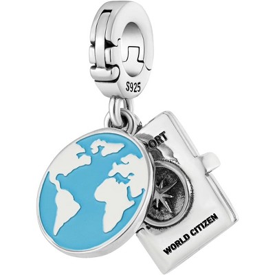 Sterling Silver Travel Charm - Globe & Passport Clip-On Pendant for Bracelets & Necklaces