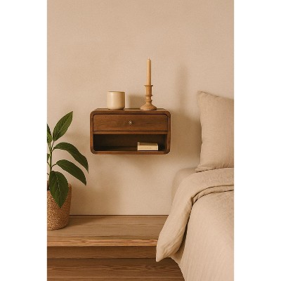 - floating walnut nightstand