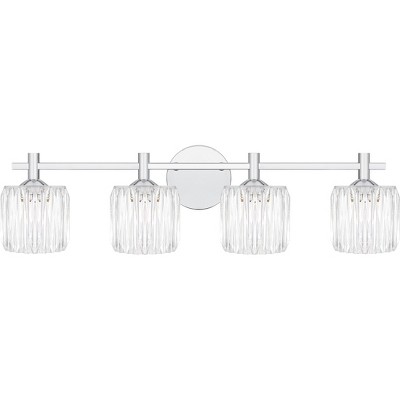 Possini Euro Design Modern Wall Light Chrome Hardwired 32" Wide 4-Light Fixture White Linen Glass for Bathroom Vanity