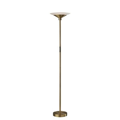 Adesso Solar Torchiere (Includes LED Light Bulb) Antique Brass: Energy-Efficient with Frosted Glass Shade, Touch Dimmer Switch, ETL Listed