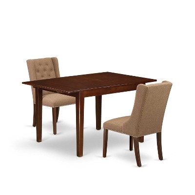 3-Piece Mahogany Finish Solid Wood Top Dining Table Set