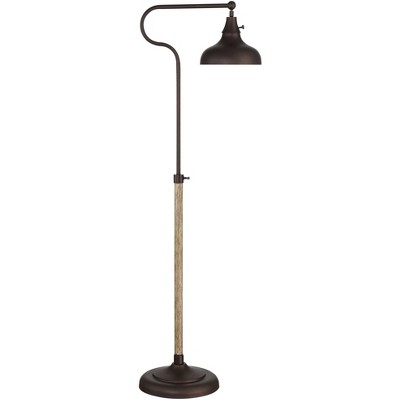 Franklin Iron Works Industrial Rustic Farmhouse Pharmacy Floor Lamp with USB 57" Tall Bronze Faux Wood Grain Adjustable Metal Shade for Living Room