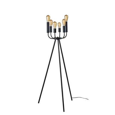 Dalton Floor Lamp: Modern Industrial, Antique Brass Finish, Edison Bulbs - Adesso