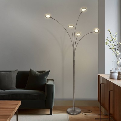 Brightech Orion 5 Modern Integrated LED Swing Arm Arc Floor Lamp Brushed Nickel: 6ft Tall
