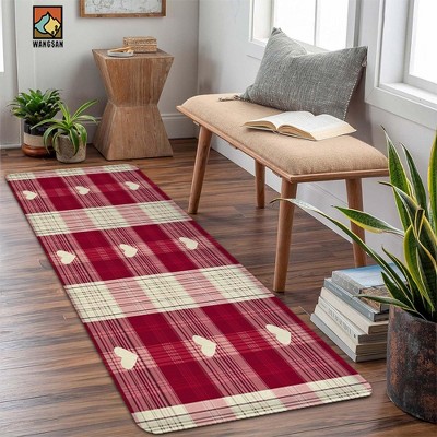 Lomsoe 1pc Flannel Floor Mat/Carpet,Valentine'S Day Plaid Heart Print Bathroom Mat,Suitable for Bathroom,Living Room, Bedroom.