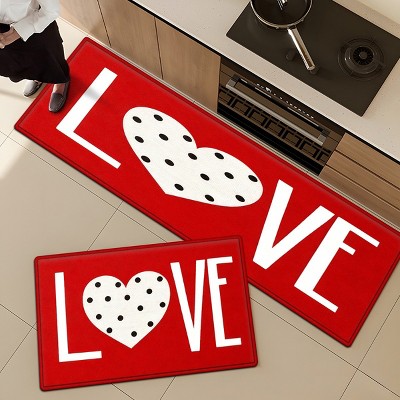 Lomsoe 2pcs Valentine'S Day Themed Wood Grain Heart Rose Pattern Kitchen Mat for Living Room, Bedroom, Hallway, Dining Room, Bathroom.