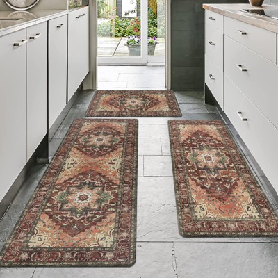 BAGOKIE Anti-Fatigue Kitchen Mat Non Slip Washable Faux Wool Kitchen Rug Sets of 3