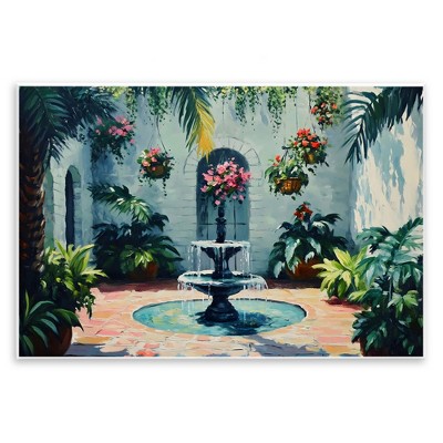Stupell Industries Floral Fountain Courtyard Wall Plaque Art, 19" x 13"
