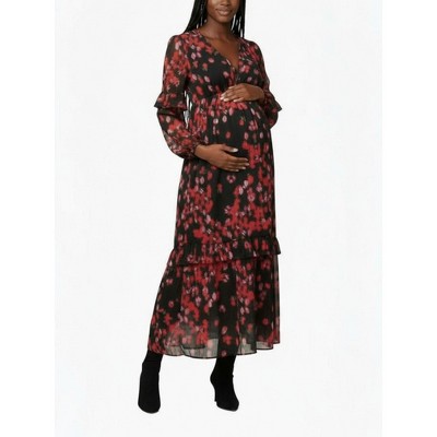 August Sky Women's Floral Buttton Down Long Sleeve Midi Dress