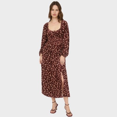 August Sky Women's Square Neck Smocked Tiered Floral Midi Dress