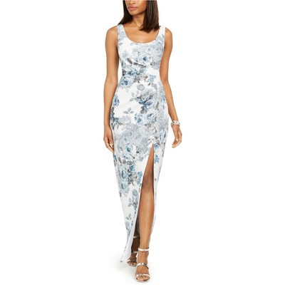 GUESS Womens Metallic Illusion Floral Sheath Dress