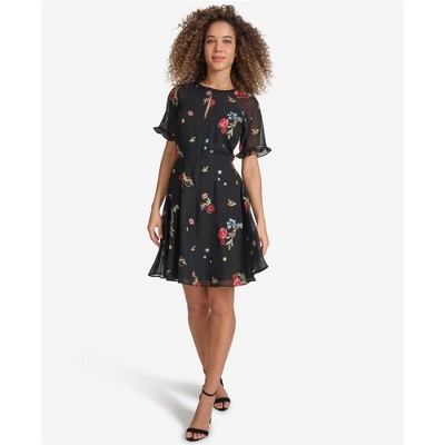 GUESS Womens Embroidered Fit Flare Floral Pencil Dress