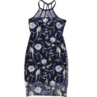 GUESS Womens Embroidered Fit Flare Floral Pencil Dress