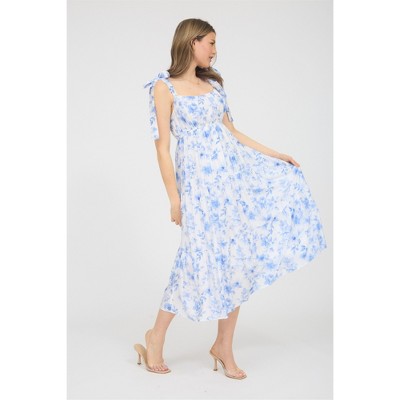 August Sky Women's Floral Adjustable Straps Ruffle Tiered Midi Dress