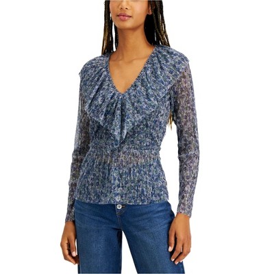 I.N.C International Concepts Womens Ruffle Floral Pullover Blouse