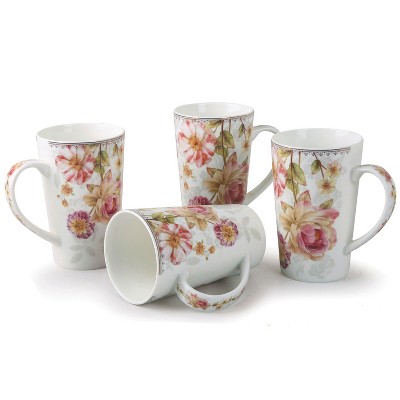 Lorren Home Trends Set of 4 Tall Mugs Rose Floral