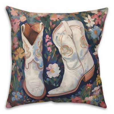 16"x16" Daisy May's Garden Square Throw Pillow White - e by design: Decorative Floral Indoor Cushion