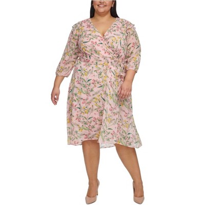 Kensie Womens Floral Print Pintucked Flounce Dress