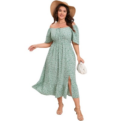 Whizmax Women's Plus Size Midi Dress Summer Floral Print Ruffle Flowy Dress