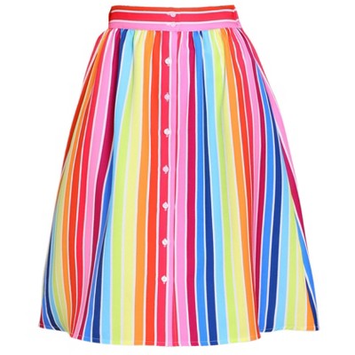 INSPIRE CHIC Women's Stripes Button Front Elastic Back A-Line Midi Skirt