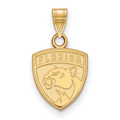 Black Bow Jewelry 14k Yellow Gold Plated Sterling Silver Florida Panthers NHL Small Florida Shield Pendant