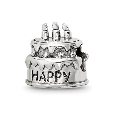 Black Bow Jewelry Happy Birthday Cake Bead Charm in Antiqued Sterling Silver
