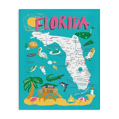 Stupell Industries Florida Teal Blue and Pink Illustrated Scenic Map Poster Canvas Art, 24" x 30"
