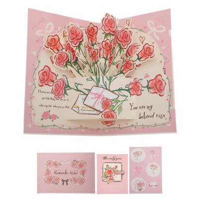 Unique Bargains Greeting Card Rose Series Bouquets Paper 6.3"x4.3"x0.4" 1 Pc