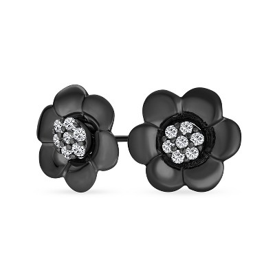 Black Bow Jewelry Blue Diamond 10mm Open Flower Post Earrings in Sterling Silver