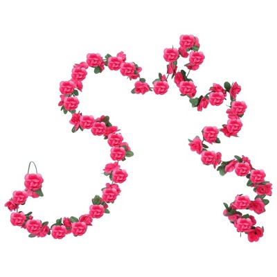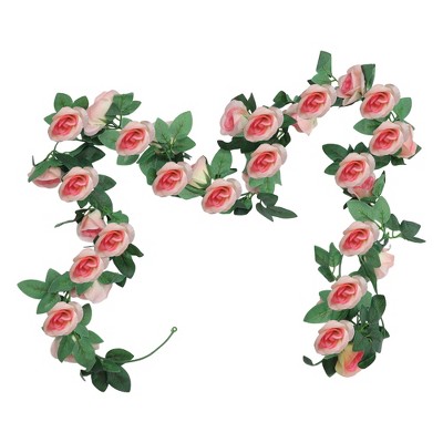 Unique Bargains Artificial Flowers Hanging Vine Rose Vine Garland 86.6" Champagne 2 Pcs