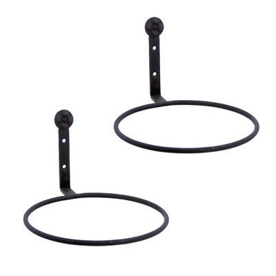 Set of 2 8" Wall Mounted Flower Pot Holder Ring Brackets Black Powder Coat - ACHLA Designs