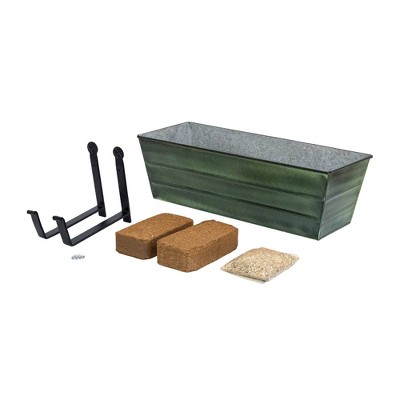 ACHLA Designs Medium Patina Finish Rectangular Galvanized Steel Outdoor Planter Box with Mounting Bracket Green 24"x9.5"